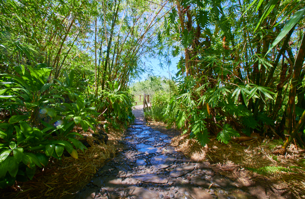 Sur le panneau d’entrée de zone, vous verrez comment les racines s’insèrent au niveau des nœuds des rhizomes, mais aussi à la base même des chaumes pour en assurer l’ancrage au sol. Les branches émergent des nœuds des chaumes. Elles supportent les feuilles qui assurent la fonction chlorophyllienne. Certaines feuilles, appelées gaines, sont spécialisées pour protéger les fragiles turions