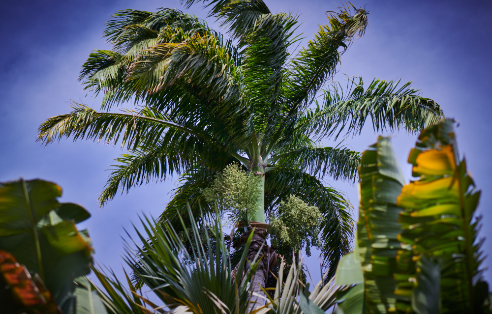 Cette immense colonne à votre gauche en sortant des bambous peut atteindre 30 m de hauteur. Il a été implanté à la Réunion pour l’ornement des jardins, routes et parcs mais il peut aussi être utilisé comme source de chaume, comme bois de construction ou comme plante médicinale. En effet, les racines ont des propriétés diurétiques et sont utilisées contre le diabète. Le chou de ce palmier se mange et est très apprécié des Réunionnais, ce qui lui vaut malheureusement très fréquemment d’être étêté.