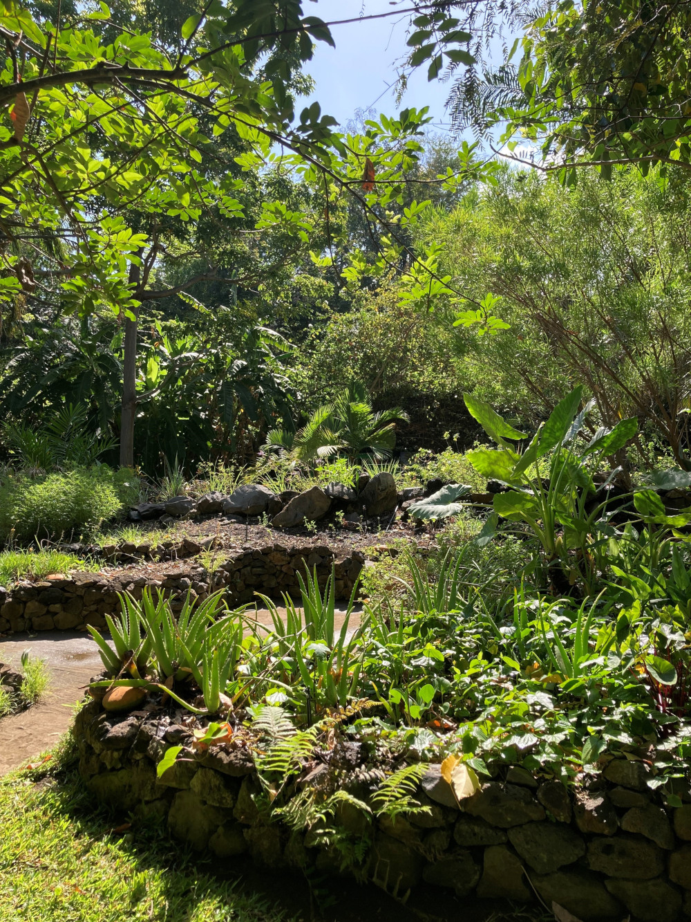 Cette zone en forme de trèfle à 4 feuilles a été édifiée par Philippe Kaufmant à la mémoire du Père Raimbault. Le Jardin d’Eden y présente quelques-unes des plantes médicinales communes dans les jardins créoles. Attention, toutes les plantes ont des propriétés médicinales, mais elles peuvent également toutes être toxiques : il convient de les utiliser à bon escient ! N’utilisez des plantes qu’après avoir consulté votre médecin ou pharmacien ! De gauche à droite vous pouvez découvrir :